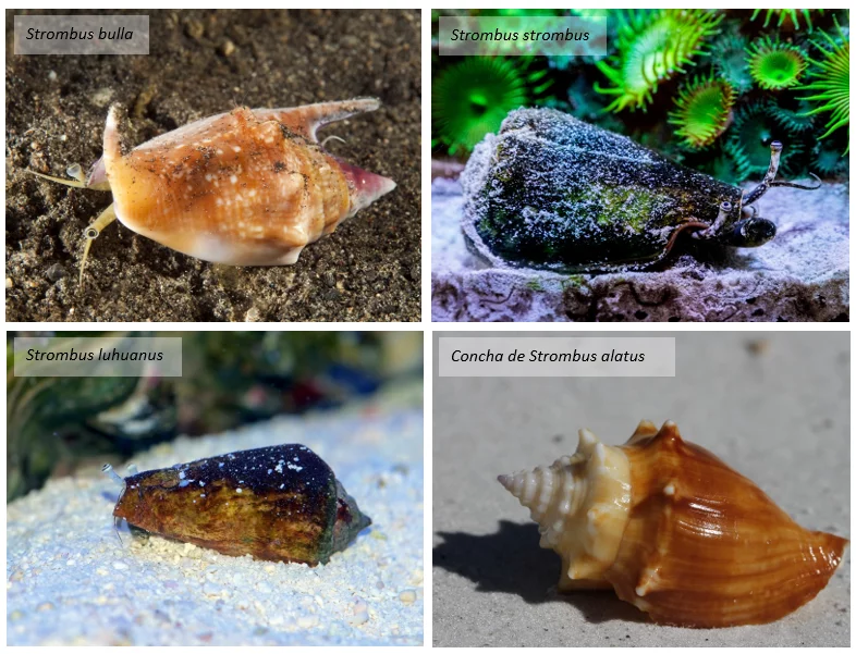 Aunque hace años solían ser poco comunes, hoy en día los podemos encontrar fácilmente en los comercios, siendo las especies más famosas y utilizadas las correspondientes a Strombus strombus, Srombus luhuanus, Strombus bulla y Strombus alatus.