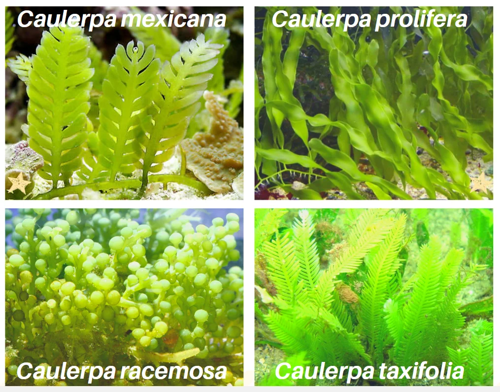 El rápido crecimiento de estas algas hace que sea necesario realizar un control o “poda” regularmente, ya que si se deja crecer descontroladamente puede generar plagas e incluso producir compuestos metabólicos secundarios que puedan resultar perjudiciales. De hecho, existe una toxina llamada “caulerpenina” muy tóxica, que genera sobre todo la especie C. taxifolia y que está poniendo en jaque a las poblaciones de peces algívoros de las zonas que están invadiendo estas especies foráneas, pues aunque en su hábitat natural los peces están adaptados a este método de defensa de las Caulerpas y son capaces de comérselas y controlar su población, en zonas donde su presencia es nueva, los peces locales se encuentran indefensos contra esta toxina producida por estas algas, por lo que no se las comen, permitiendo la proliferación y crecimiento masivo de esta especie invasora.